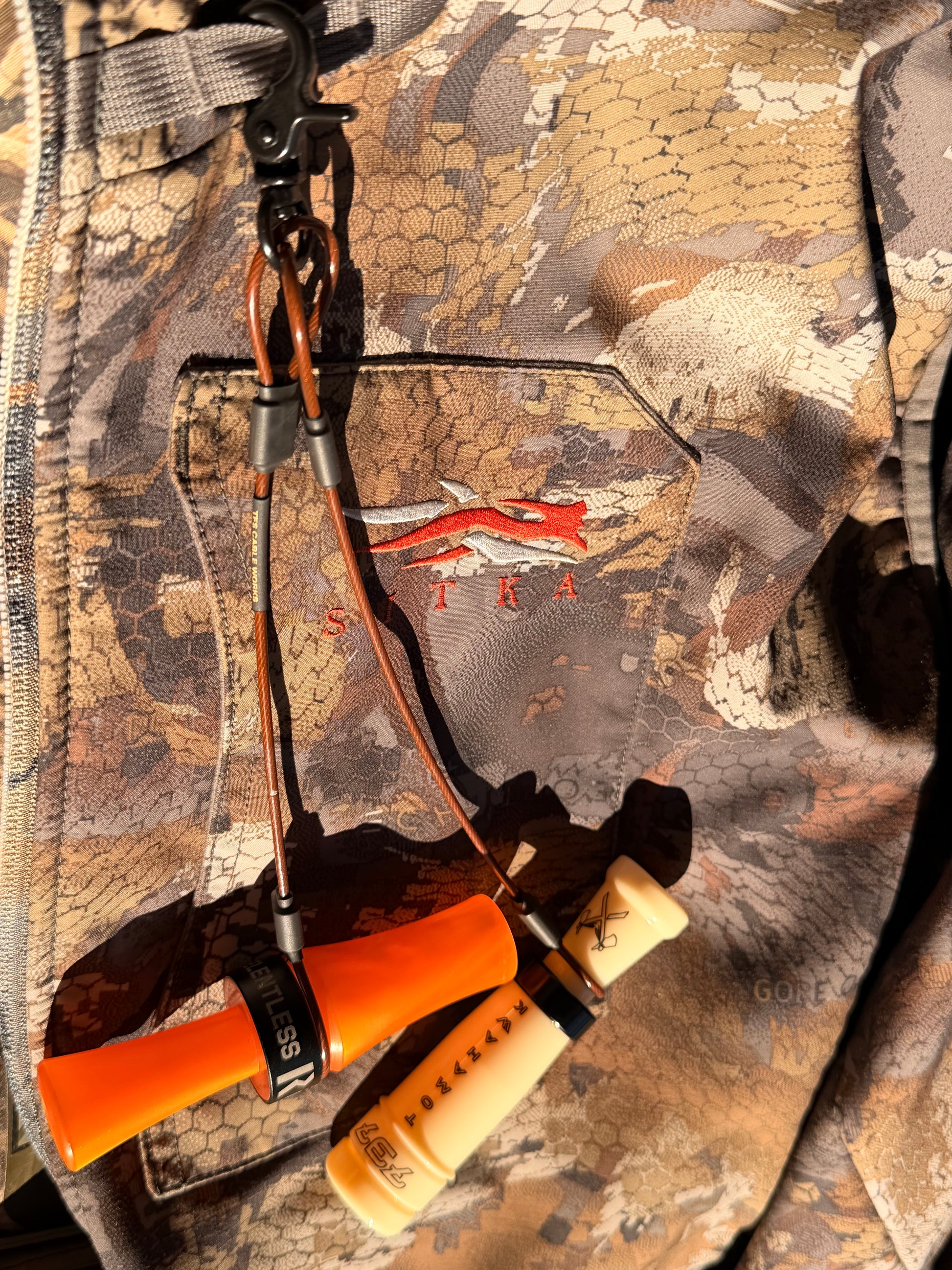 Each drop features a black trigger snap hook for quick, secure attachment to your lanyard, jacket, or pack. Designed to keep your calls organized, accessible, and tangle-free—right where you need them when the birds are working.